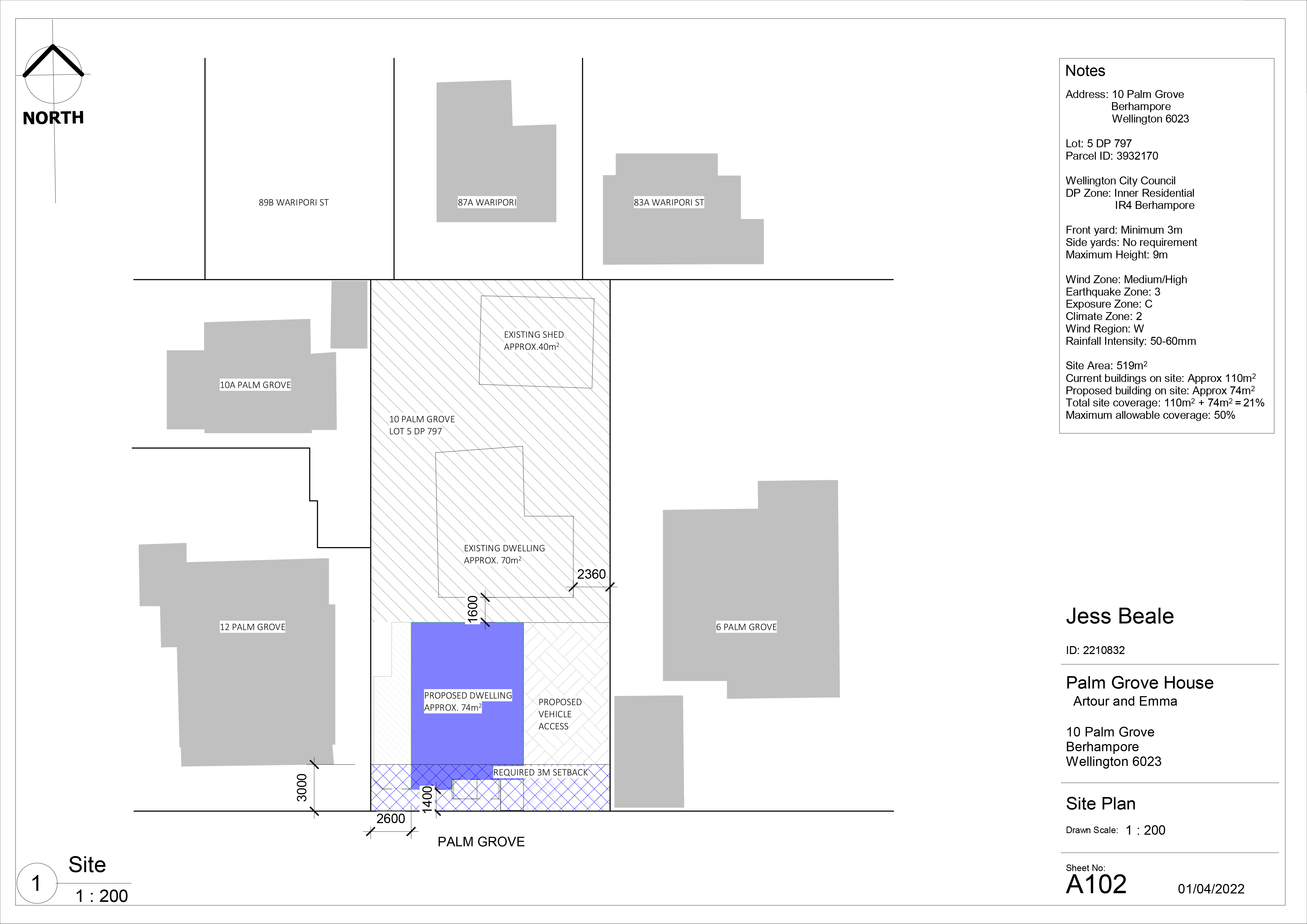 The house is intended to be placed at the front of a section in Berhampore, in front of an existing house.